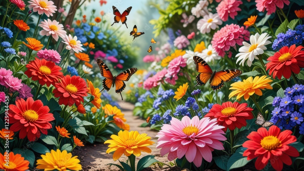 A Vibrant Garden In Spring With Blooming Flowers Wallpaper Mural - Decorly Solutions | Decorly Solutions