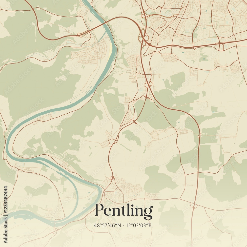 Vintage Map Of Pentling Germany Wallpaper Mural - Decorly Solutions | Decorly Solutions