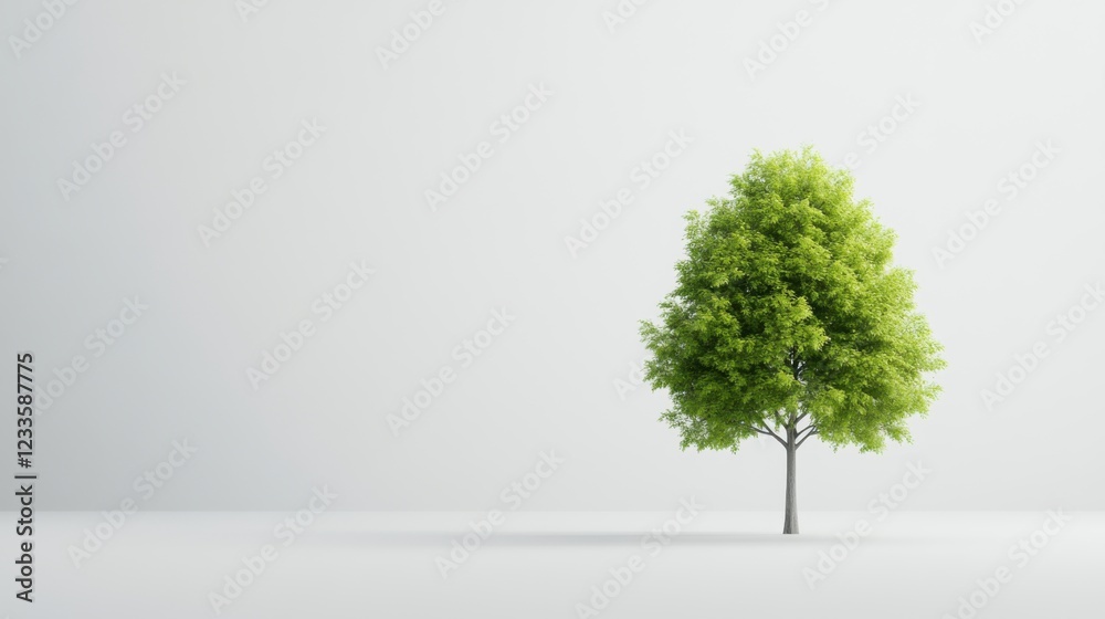 Lush Green Tree With Vibrant Foliage Against Minimalist Wallpaper Mural - Decorly Solutions | Decorly Solutions