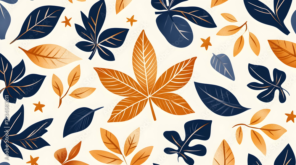 Autumn Leaves Pattern Gold Navy Cream Background Fall Wallpaper Mural - Decorly Solutions | Decorly Solutions