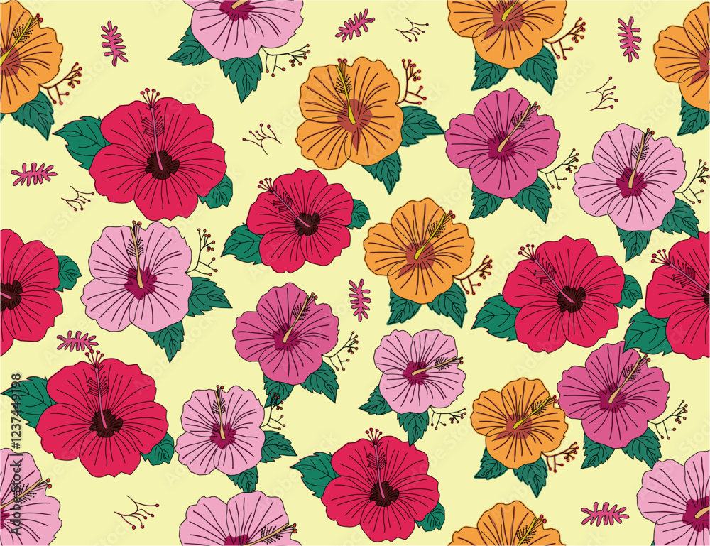 Seamless Hibiscus Floral Pattern Colorful Hibiscus Flower With Wallpaper Mural - Decorly Solutions | Decorly Solutions