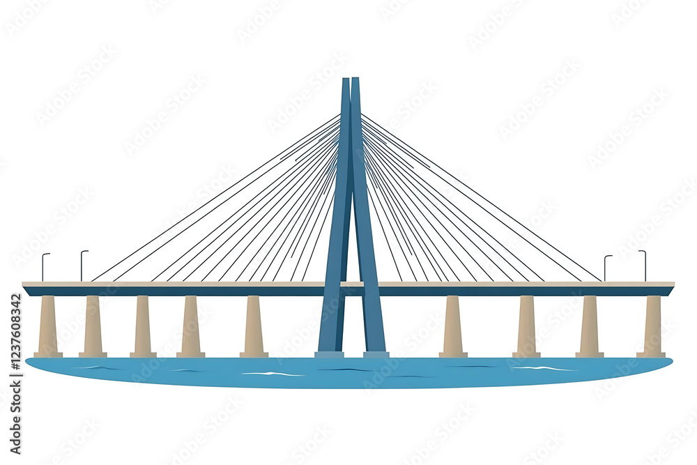 A Flat Vector Illustration Of A Large Bridge With Modern Design And Vibrant Colors, Perfect For Architectural And Urban Concepts