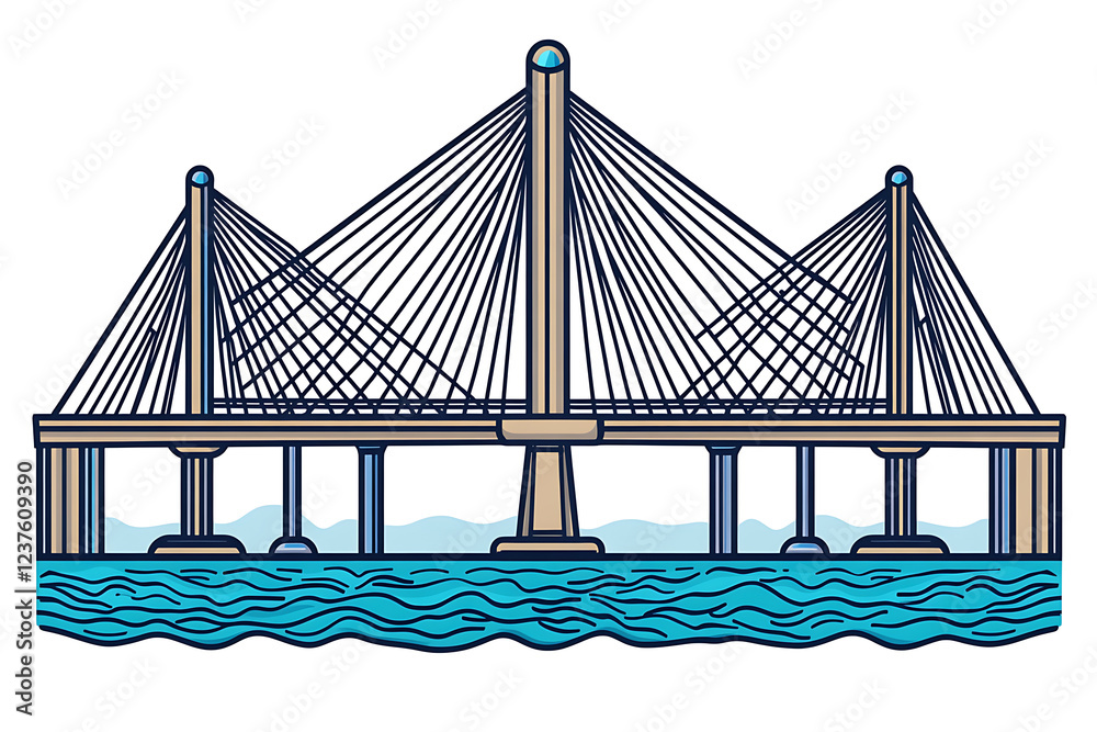 A Flat Vector Illustration Of A Large Bridge With Modern Design And Vibrant Colors, Perfect For Architectural And Urban Concepts
