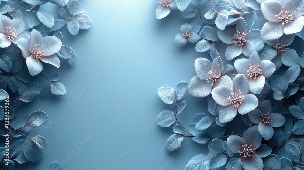 Serene Blue Floral Composition A Digital Art Piece Wallpaper Mural - Decorly Solutions | Decorly Solutions