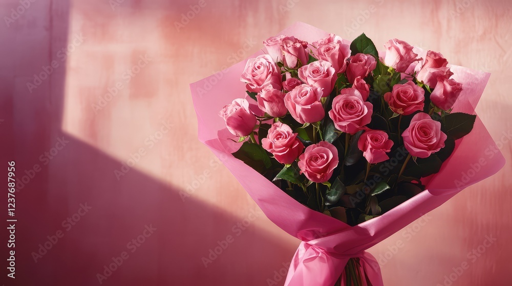 Soft-focus Dozen Pink Roses Elegant Floral Arrangement In Wallpaper Mural - Decorly Solutions | Decorly Solutions