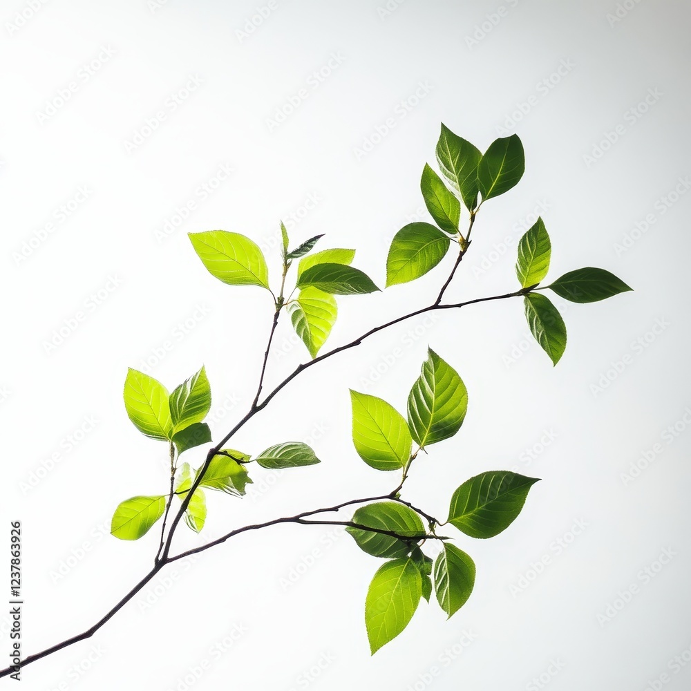 Fresh green branch studio shot bright background spring grow Wallpaper