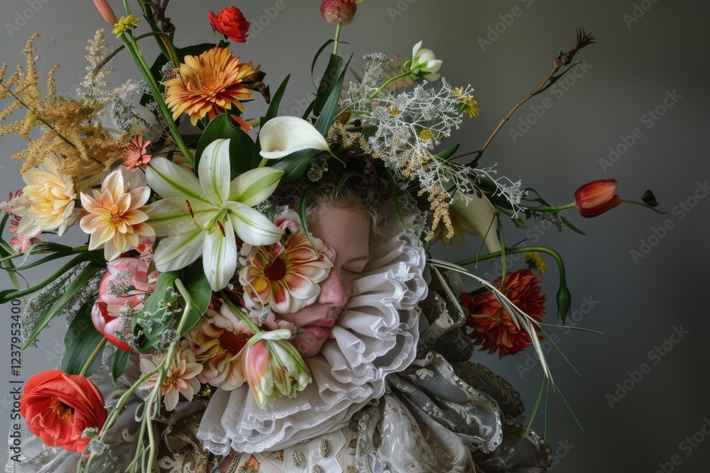 Enigmatic Noblewoman Concealed By Bouquet Of Flowers Wallpaper Mural - Decorly Solutions | Decorly Solutions
