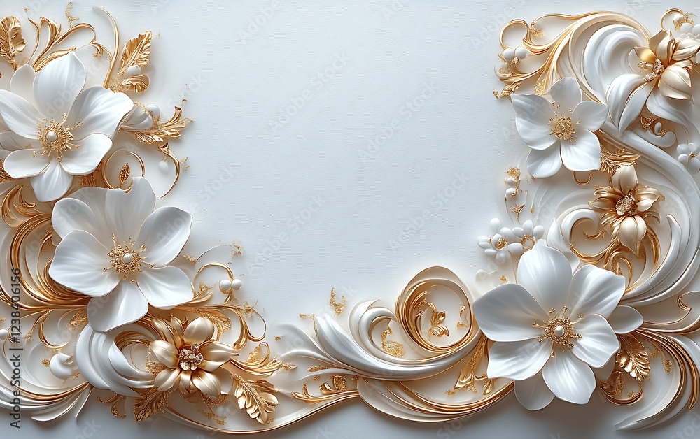 Elegant White Floral Design With Golden Swirls On Wallpaper Mural - Decorly Solutions | Decorly Solutions