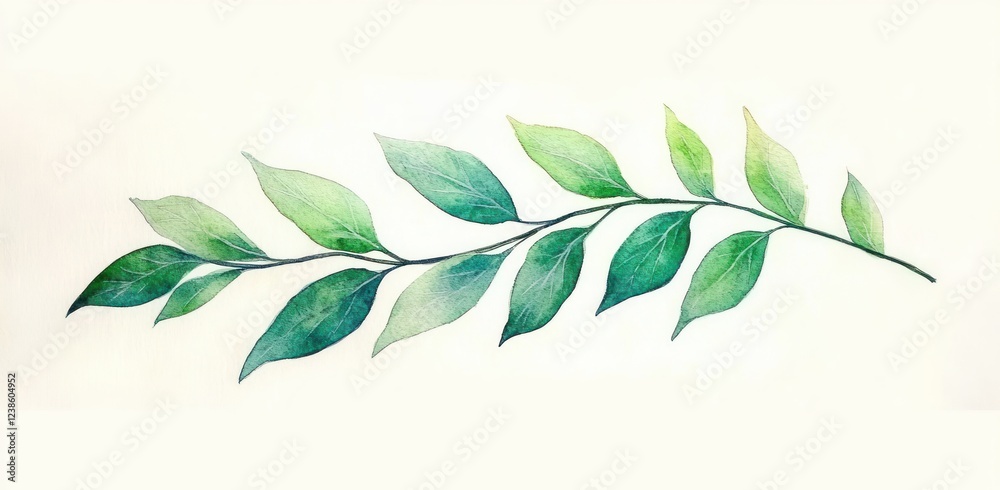 Watercolor Green Leaf Branch Illustration for Border Design Wallpaper