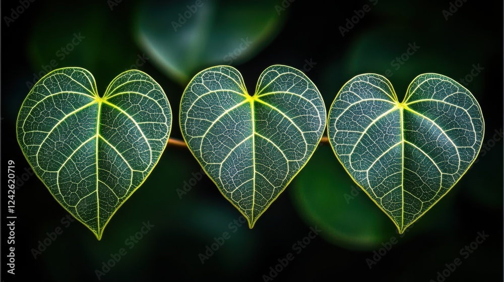 Three Heart Shaped Green Leaves Close Up Macro Wallpaper Mural - Decorly Solutions | Decorly Solutions