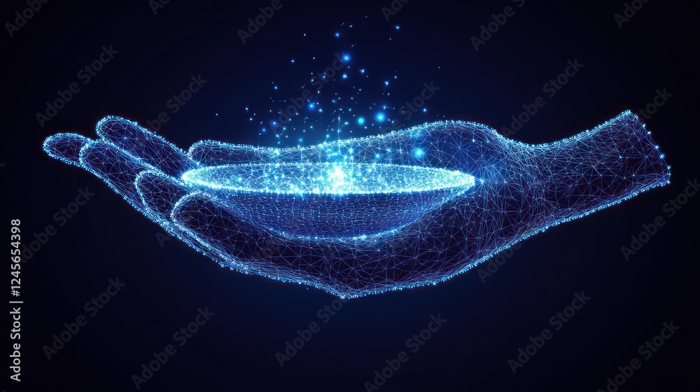 Glowing Polygonal Hand Holding A Bowl Of Light Wallpaper Mural - Decorly Solutions | Decorly Solutions