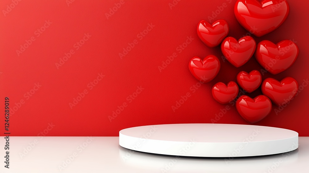 Red Hearts And White Podium On Red Background Wallpaper Mural - Decorly Solutions | Decorly Solutions