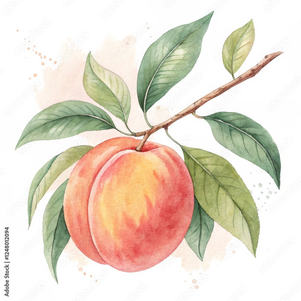 Watercolor Peach Fruits