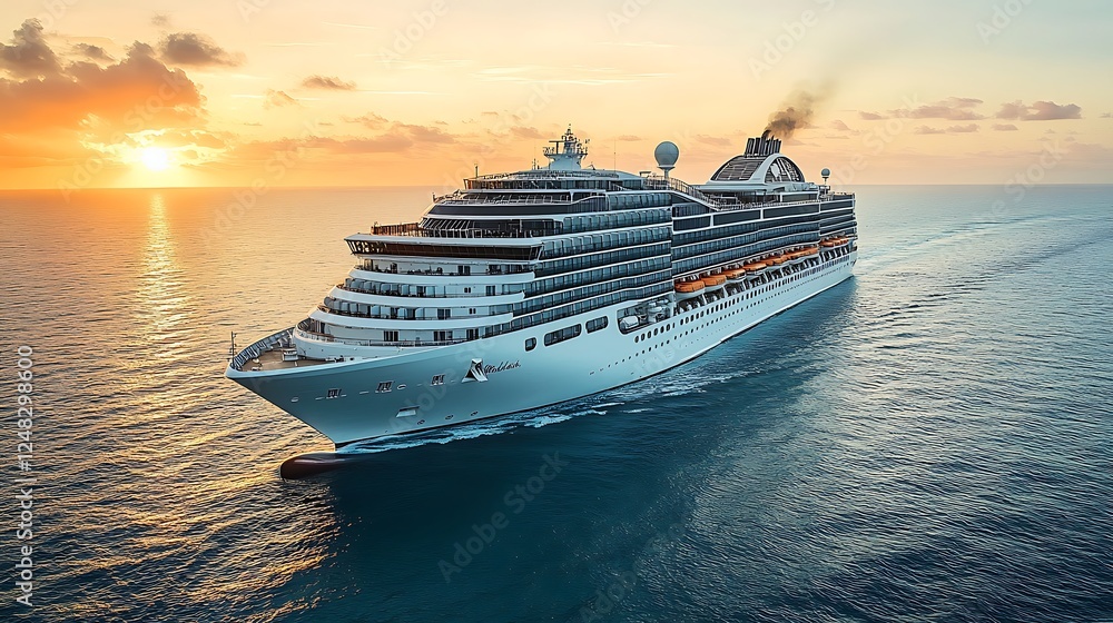 Majestic Cruise Ship Sailing At Sunset Ocean Voyage Wallpaper Mural - Decorly Solutions | Decorly Solutions
