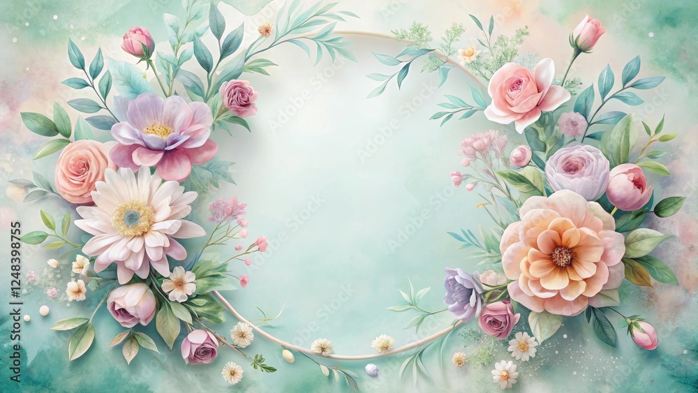 Pastel Floral Wreath Encircling A Mint Green Background Wallpaper Mural - Decorly Solutions | Decorly Solutions