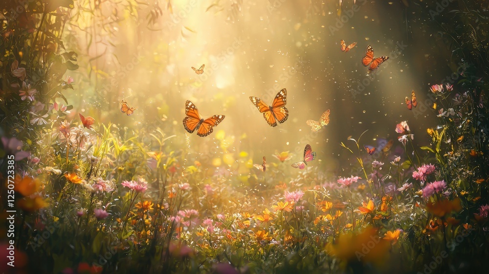 Butterflies Flit Above A Sun-drenched Meadow Their Vibrant Wallpaper Mural - Decorly Solutions | Decorly Solutions