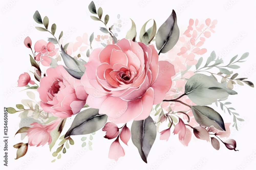 A beautiful watercolor painting of a bouquet of pink and white flowers