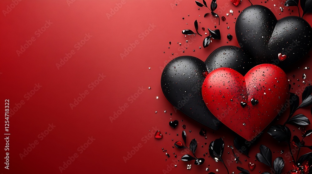 Valentines day celebration card with a red and black 3D graphic heart a joyful symbol of love and happiness for wedding and romantic events