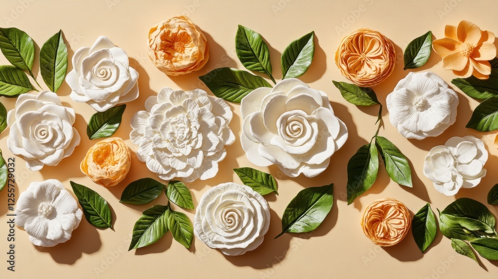 Intricate Paper Flowers In White And Orange Arranged Wallpaper Mural - Decorly Solutions | Decorly Solutions
