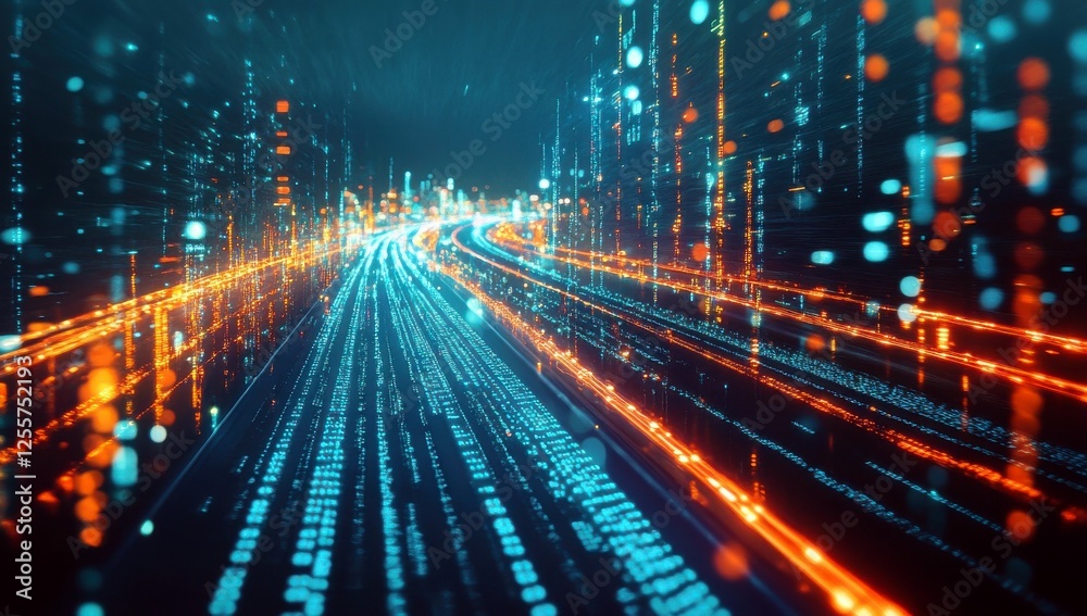 Vibrant Stream of Data with Glowing Lights Abstract Technolo Wallpaper