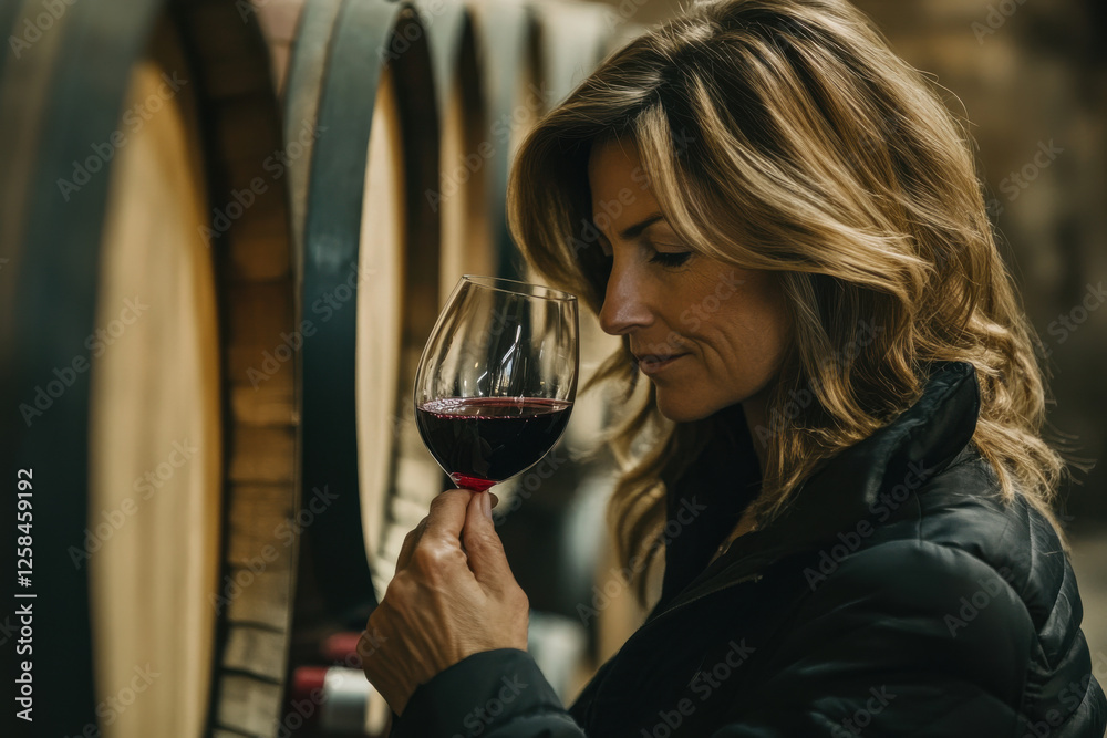 Woman Sommelier Tasting A Glass Of Red Wine Wallpaper Mural - Decorly Solutions | Decorly Solutions