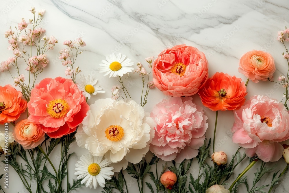 The Arrangement Of Peonies And Daisies On A Wallpaper Mural - Decorly Solutions | Decorly Solutions