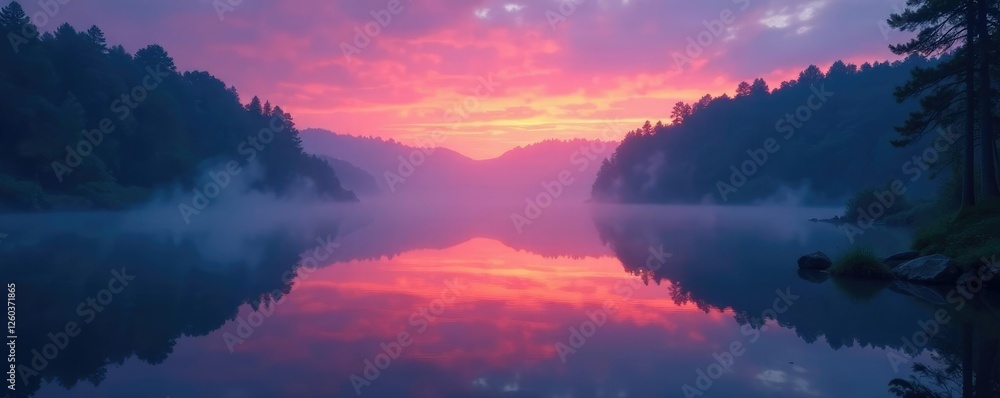 A Misty Lake Reflects The Eerie Atmosphere Of Wallpaper Mural - Decorly Solutions | Decorly Solutions