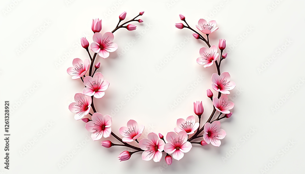 Cherry Blossom Wreath Illustration With Modern Style Wallpaper Mural - Decorly Solutions | Decorly Solutions