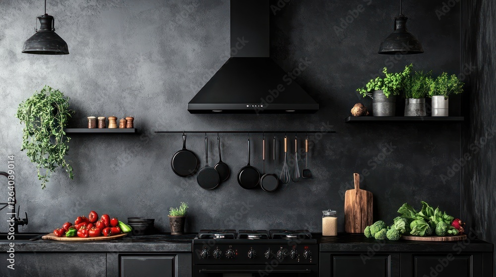Dark Kitchen Interior Cooking Industrial Design Range Hood Wallpaper Mural - Decorly Solutions | Decorly Solutions