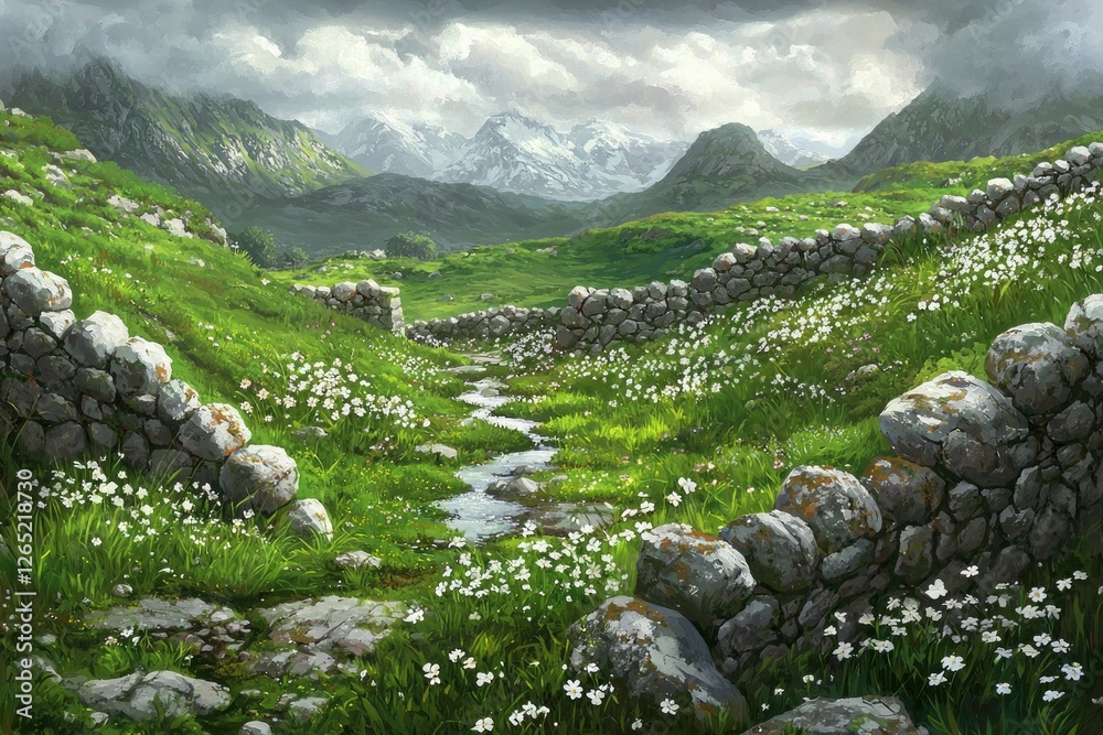 A Beautiful Painting Of The Green Grassy Hills Wallpaper Mural - Decorly Solutions | Decorly Solutions