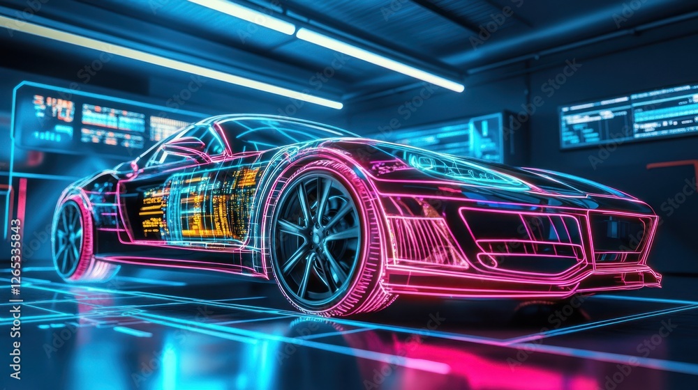3d Rendering Of An Electric Car With Data Lines. Generate Ai Image