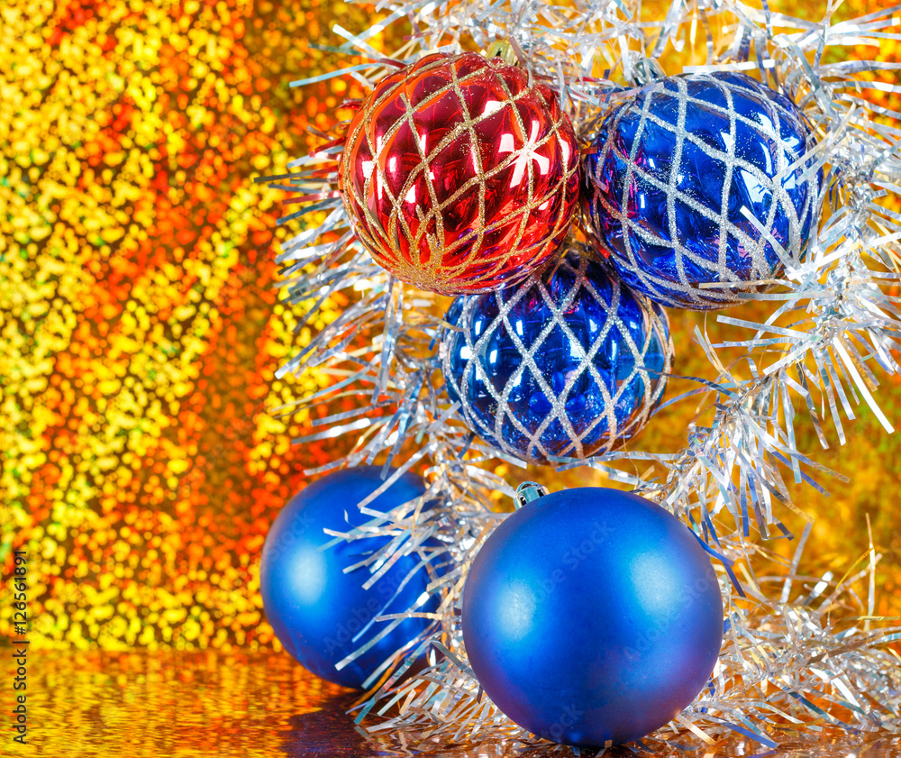 Blue And Red Xmas Balls On A Sparkling Wallpaper Mural - Decorly Solutions | Decorly Solutions