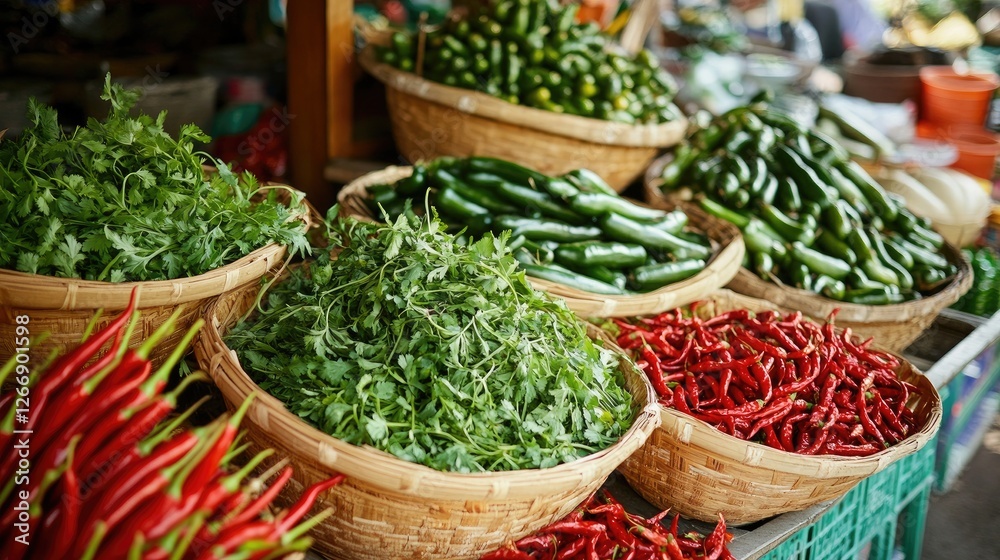 Fresh Organic Vegetables Displayed in Rustic Market Baskets Surrounded by Bright Colors and Natural Textures for Culinary Inspiration