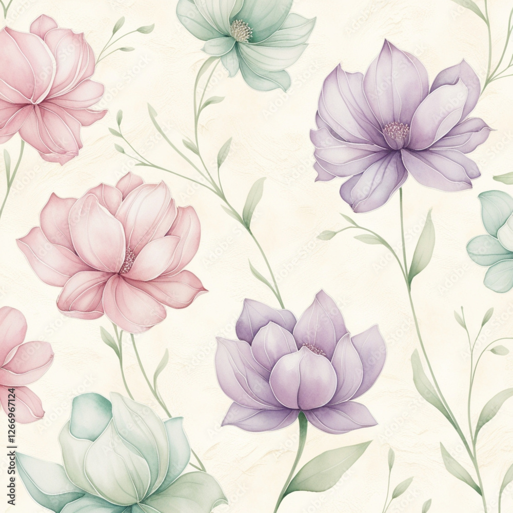 Watercolor Floral Background With Pastel Blooms And Botanical Elements