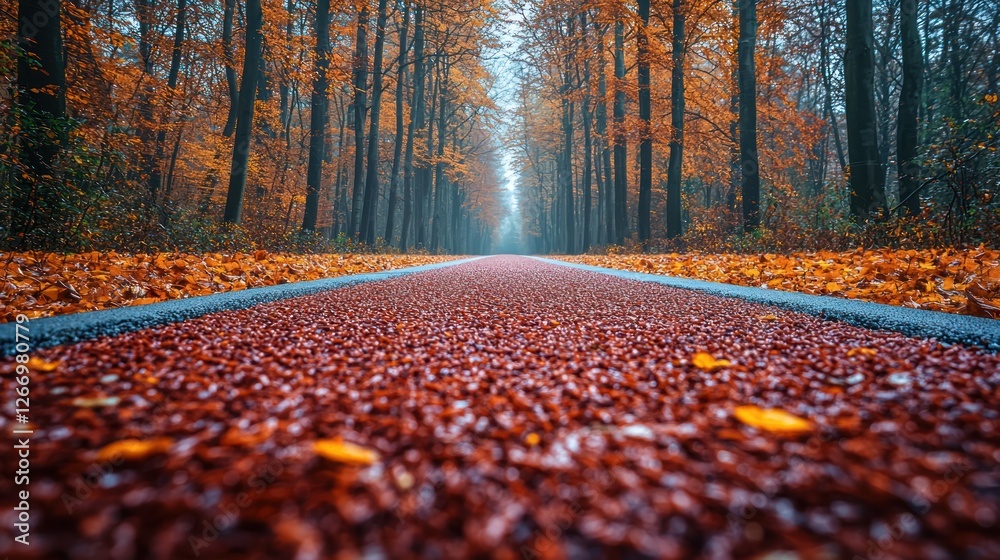 Autumnal Road Through The Forest A Serene Fall Wallpaper Mural - Decorly Solutions | Decorly Solutions