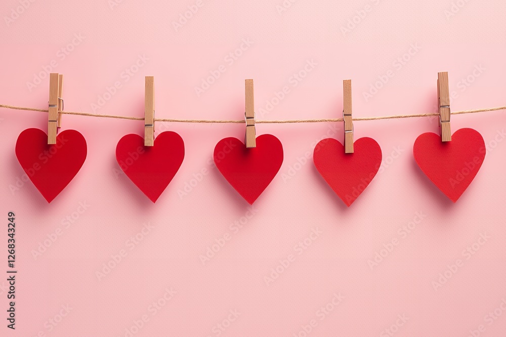 Hearts on a string: A charming display of love suspended against a soft pink backdrop
