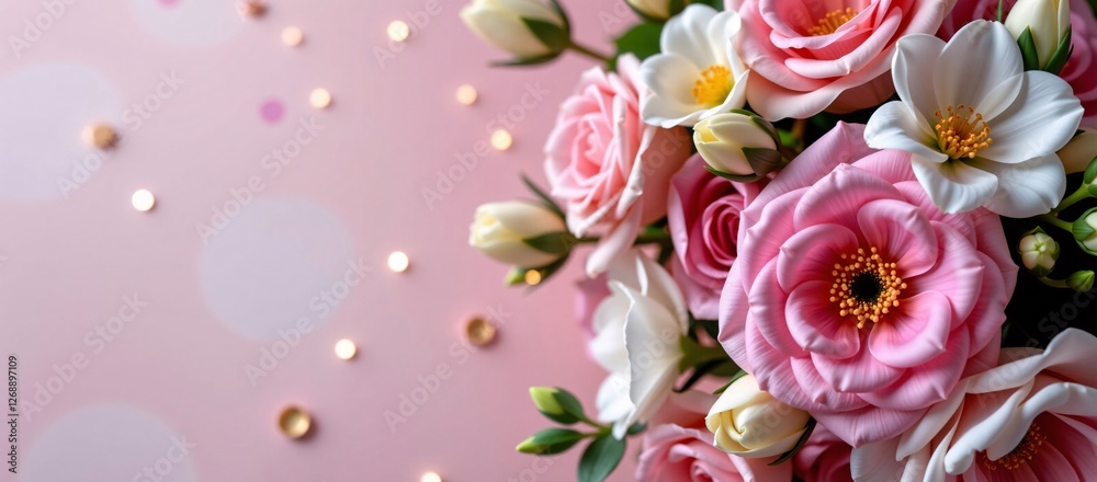 Pink And White Floral Arrangement On A Light Wallpaper Mural - Decorly Solutions | Decorly Solutions