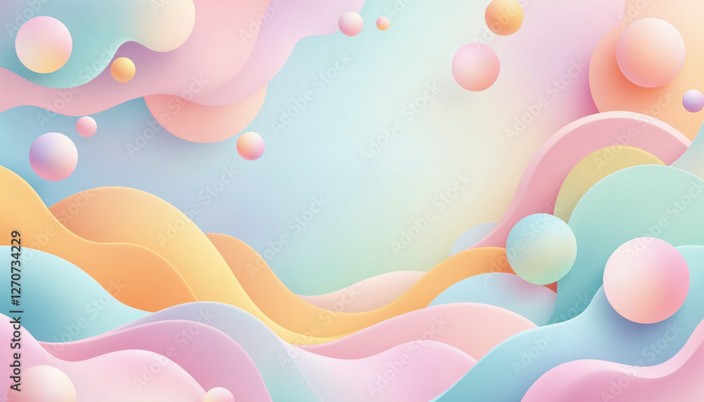 Fondo abstracto con esferas y formas onduladas en colores pa Wallpaper