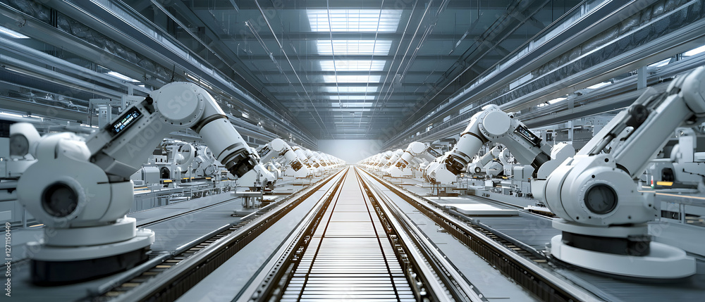 Automated Robotics Assembly Line Modern Factory Industrial Technology Wallpaper Mural - Decorly Solutions | Decorly Solutions