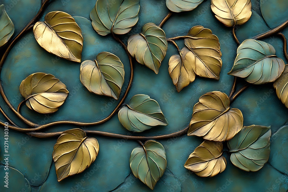 Decorative Wall Art Featuring Golden Leaves On A Wallpaper Mural - Decorly Solutions | Decorly Solutions