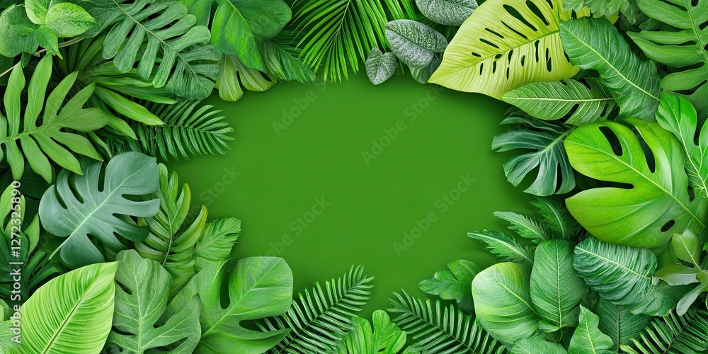 Lush Green Tropical Leaves Frame Background Wallpaper Mural - Decorly Solutions | Decorly Solutions