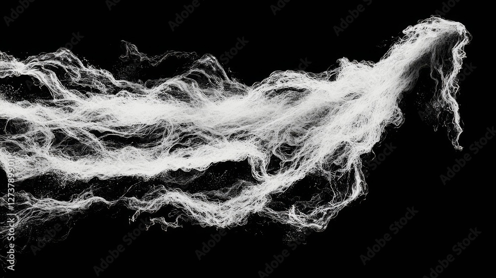 Soft white cloud with delicate edges, hovering on a black background, highly detailed and billowy