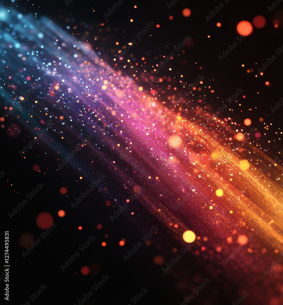 A swirling stream of sparkling colors flows across darkness