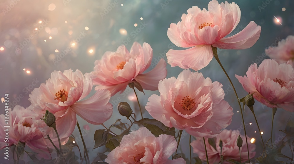 Pastel Pink Peonies In Full Bloom With Intricate Details And Soft Lighting , Soft Focus, Floral Arrangement