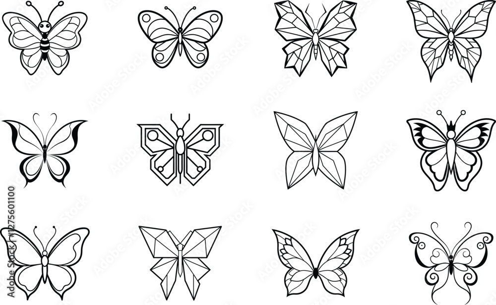 Twelve Elegant Black And White Butterfly Line Art Wallpaper Mural - Decorly Solutions | Decorly Solutions
