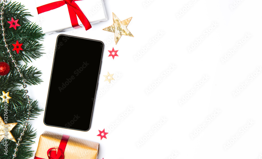Smartphone In A Christmas White Background With Tree Wallpaper Mural - Decorly Solutions | Decorly Solutions