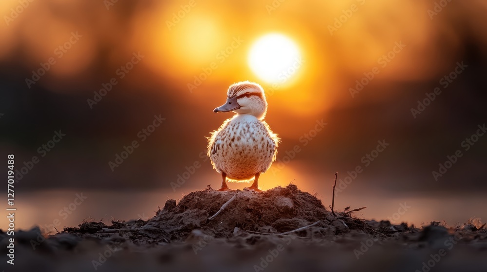 A Charming Duck Stands On A Mound Illuminated Wallpaper Mural - Decorly Solutions | Decorly Solutions