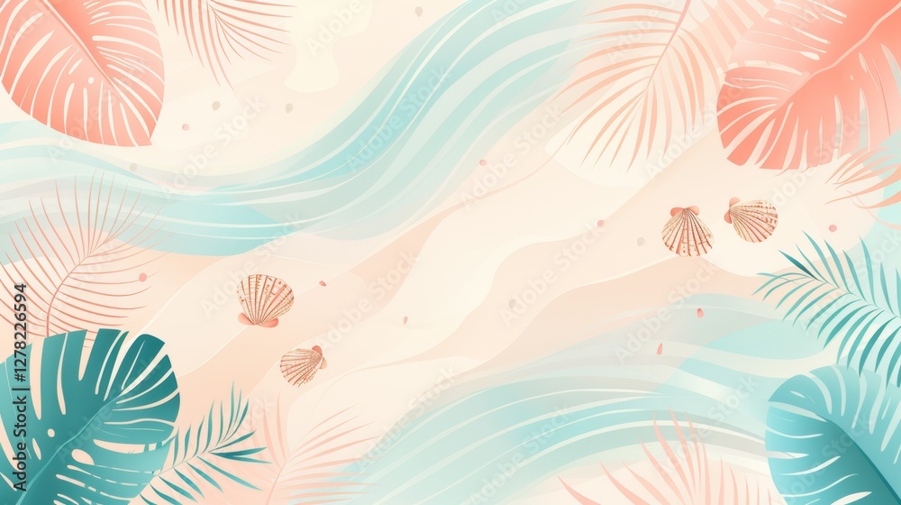 Pastel Tropical Leaves Abstract Background Design