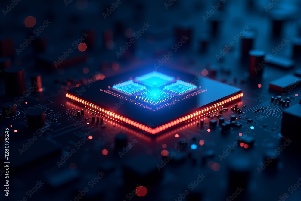 An Artificial Intelligence Chip Glowing In A Dark Wallpaper Mural - Decorly Solutions | Decorly Solutions