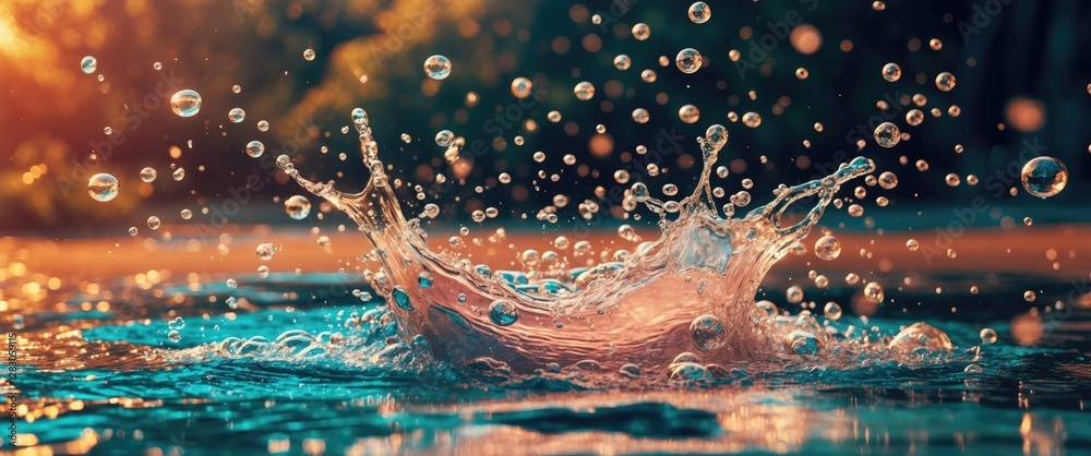 Water Splash With Droplets In Sunlight Reflecting On Wallpaper Mural - Decorly Solutions | Decorly Solutions